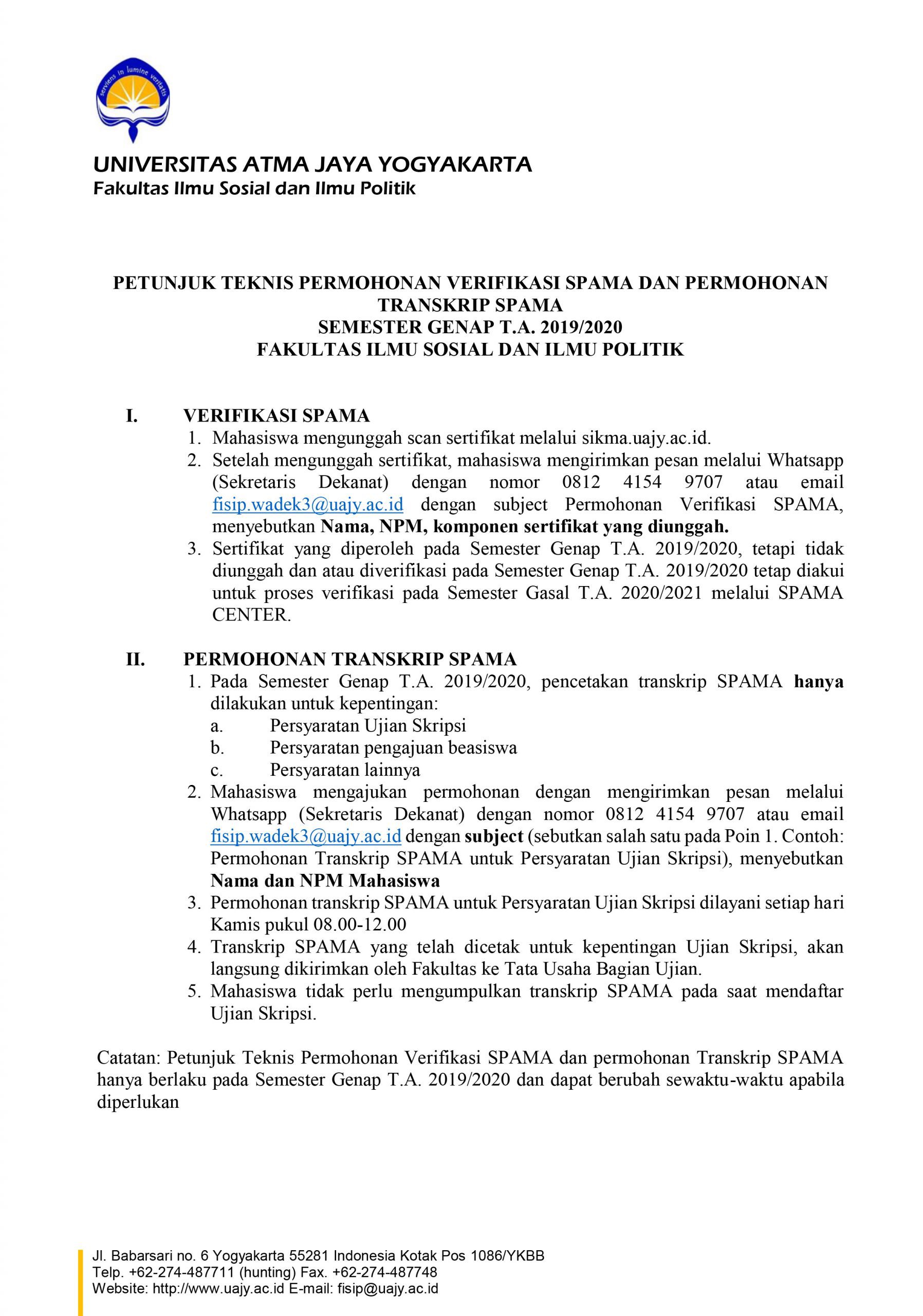 Perhitungan komposisi kategori poin SPAMA ini akan berlaku bagi mahasiswa yang mendaftar Ujian Skripsi (sesuai jadwal yang diatur oleh masing-masing Program Studi) mulai di bulan Agustus 2022.